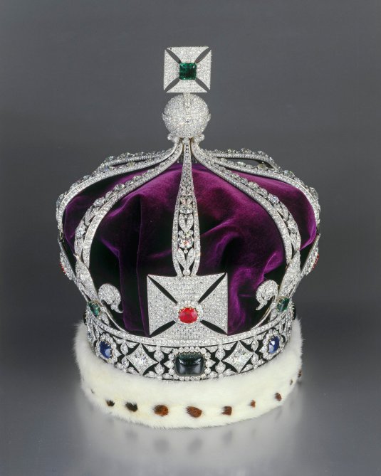 The first emperor to visit India was George V. For his imperial coronation ceremony at the Delhi Durbar, the Imperial Crown of India was created. The Crown weighs 920 g (2.03 lb) and is set with 6,170 diamonds, 9 emeralds, 4 rubies, and 4 sapphires. At the front is a very fine emerald weighing 32 carats (6.4 g). The king wrote in his diary that it was heavy and uncomfortable to wear: “Rather tired after wearing my crown for 3+1⁄2 hours; it hurt my head, as it is pretty heavy.”
