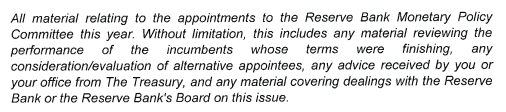 In my post yesterday I noted in passing that the Reserve Bank Board’s Annual Report had made no mention of their decision to recommend during the year the reappointment of two external MPC members (Bob Buckle and Peter Harris), notwithstanding the huge issues there appeared to be (inflation, and large monetary losses) around the handling of monetary policy. Perhaps it made sense to reappoint them, but the Board gave the public no sense of their reasoning or of what effort they had made to understand the contributions Messrs Buckle and Harris had made. Perhaps, after all, they had fought valiantly but fruitlessly to hold back the Governor’s excesses? (ok, just kidding, but you never quite know).