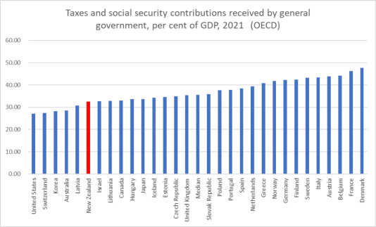 A conversation about the similarities and differences between taxes and social security contributions – my son is studying economics – prompted me to head off to the OECD website and get the data on total taxes and social security contributions as a share of GDP.