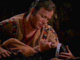 Kirk, Spock, and Bones beam down to an idyllic planet rife with pine trees, a lake, honeysuckle, and orange blossoms –it appears to be exactly akin to earth only half a galaxy away. Suddenly, the crewmen spot a strange object composed of alloy and featuring a complex language scribed upon it. Who could have constructed such an obelisk? This planet known as Amerind (only in the script, not in the episode), has primitive tribes who seem to live peacefully alongside the banks of the water. The tribes carry a mixture of “Navajo, Mohican, and Delaware” characteristics. However, we soon learn that a massive asteroid is en route to destroy this planet, and the Enterprise crew have only thirty minutes on the surface before needing to depart and hopefully…