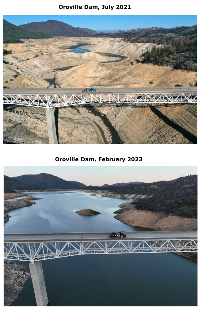 Which of the following has caused the reservoirs to fill up rapidly in California and elsewhere in the West?