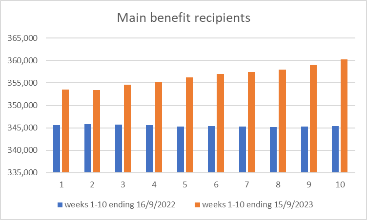 While there will not be another quarterly release of benefit numbers prior to the election, limited weekly reporting continues and is showing an alarming trend. Because there is a seasonal component to benefit number fluctuations it is crucial to compare like with like. In the ten week period to September 15, 2023 the number of…