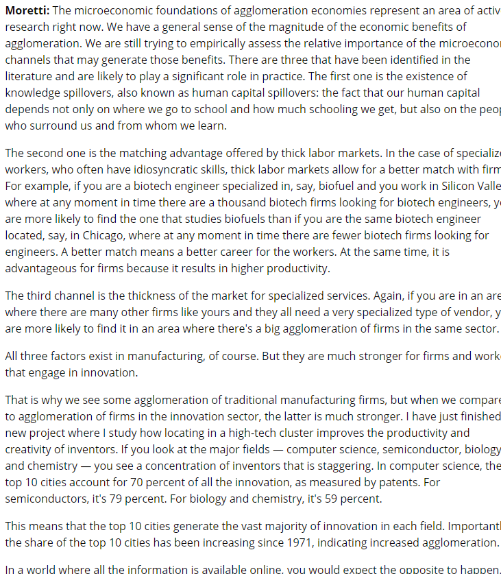 Alfred Marshall wrote on agglomeration economies as long ago as 1890