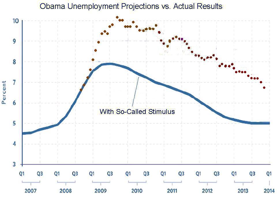 such as when the Obama White House projected that his so-called stimulus would quickly lead to falling unemployment.