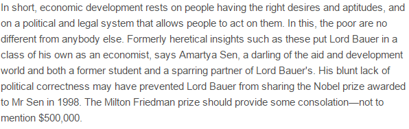 Source: Ian Vazquez “Peter Bauer: Blazing the Trail of Development”, Econ Journal Watch (May 2007).