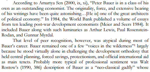 in development economics, economic history, history of economic thought, P.T. Bauer