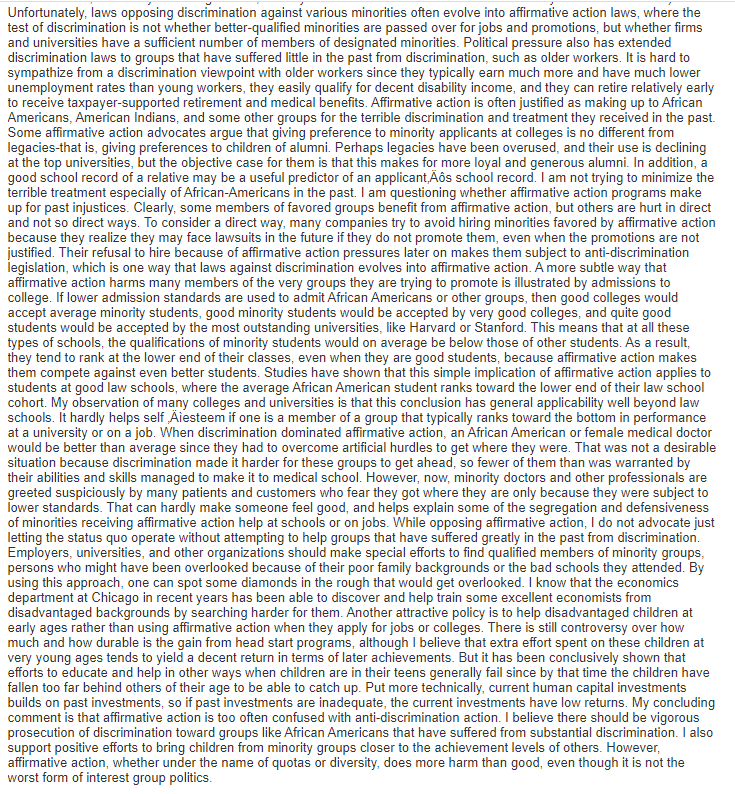 Gary Becker on affirmative action