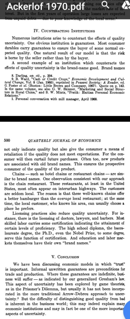 Akerlof’s lemons paper showed how markets profited from overcoming asymmetric information