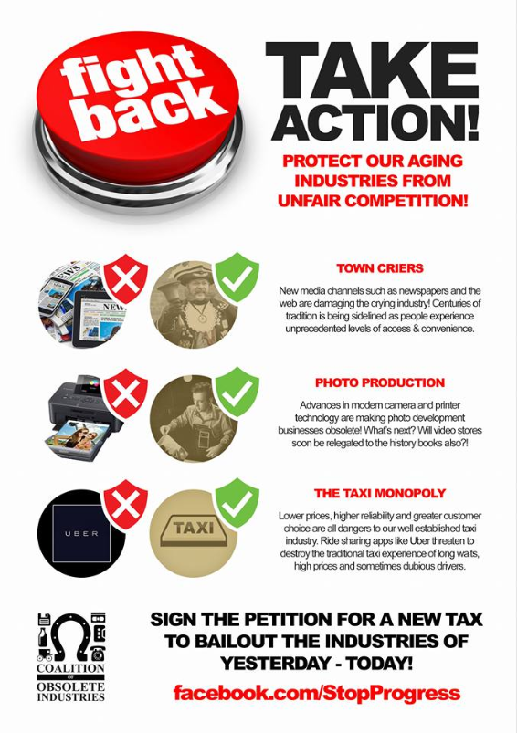 We need strong leadership to protect town criers, betamax and videostores from unfair competition!