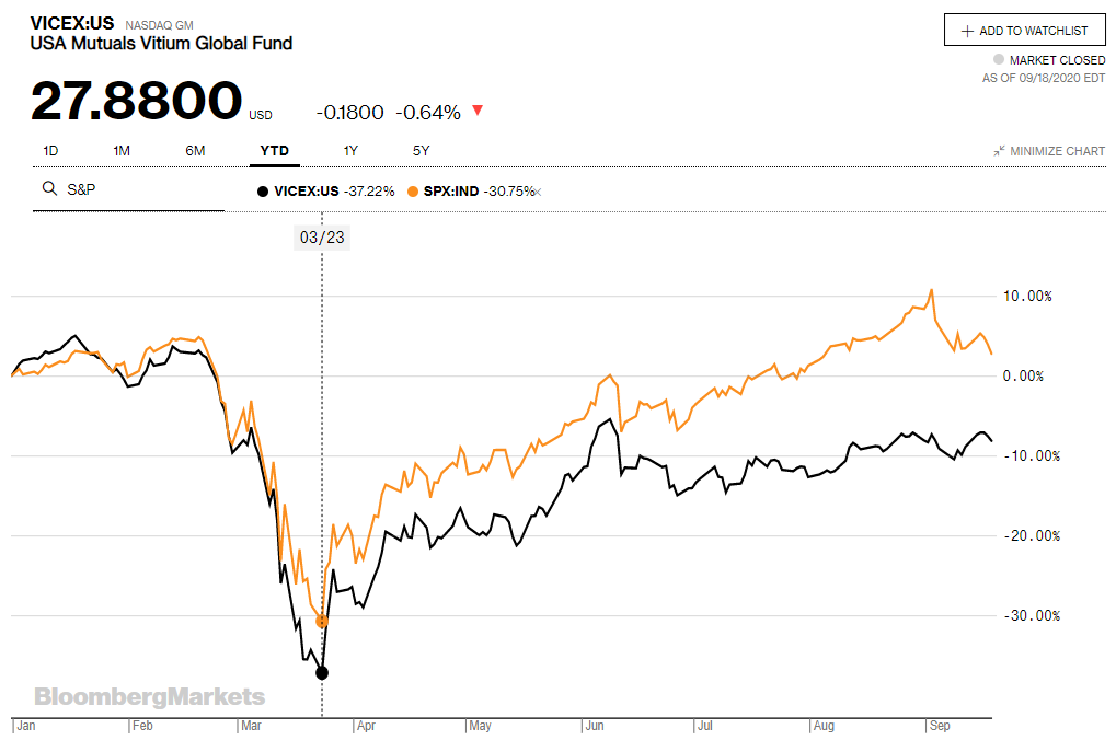 USA Mutuals Vitium Global Fund seeks long-term growth of capital by investing in equity securities of companies that derive a significant portion of their revenues from a group of vice industries that includes the alcoholic beverages, defense/aerospace, gaming and tobacco industries. The Fund will concentrate at least 25% of its net assets in this group of four vice industries.