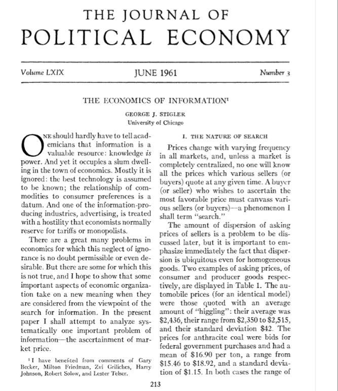 in applied price theory, economic history, George Stigler, history of economic thought, industrial organisation, Public Choice