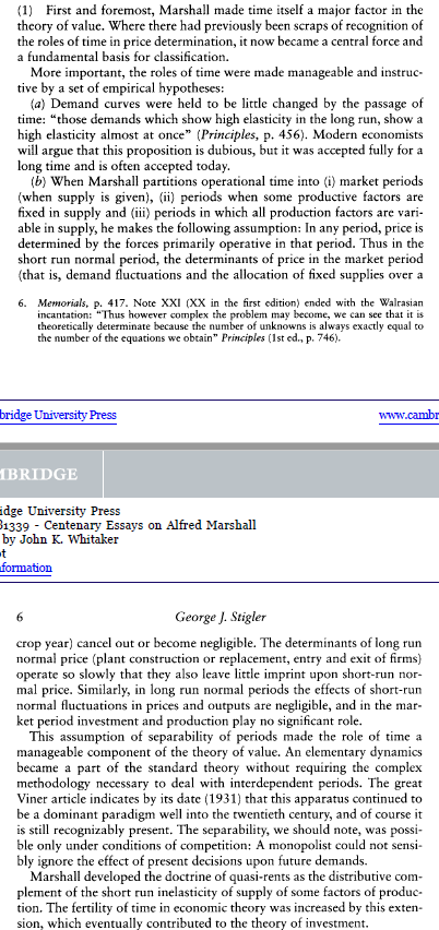 Stigler said Alfred Marshall’s greatest contribution was to dynamic analysis