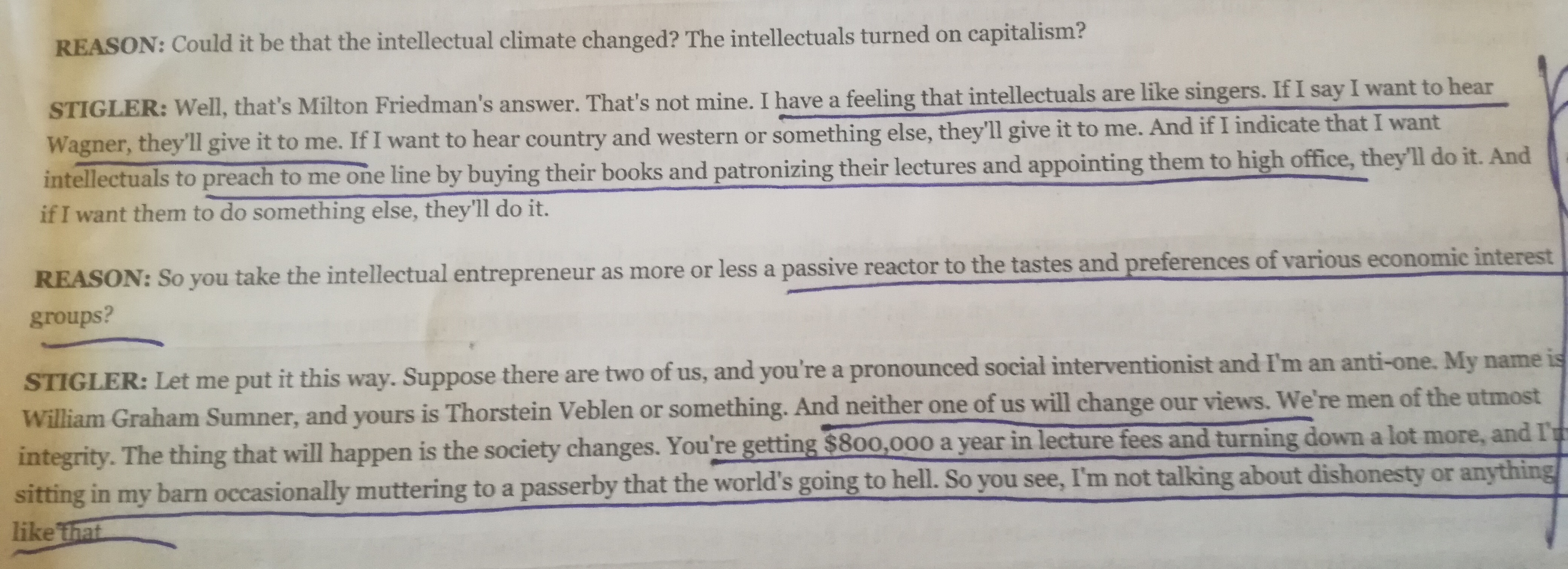 Stigler explains how intellectuals and consultants ply their policy trade honestly