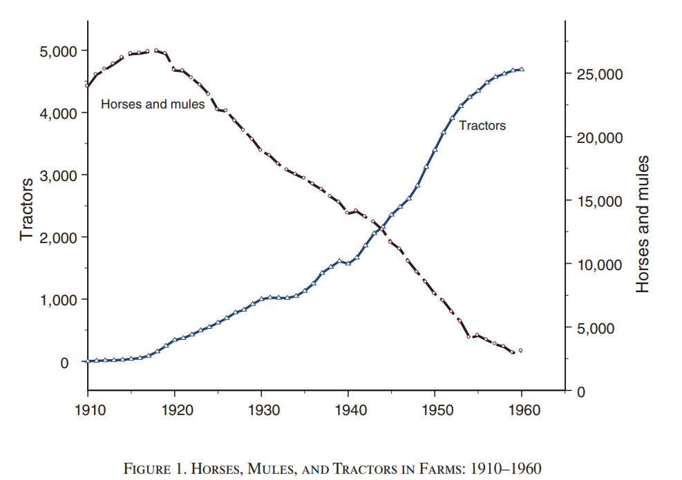 Horses and mules held their own for decades against tractors