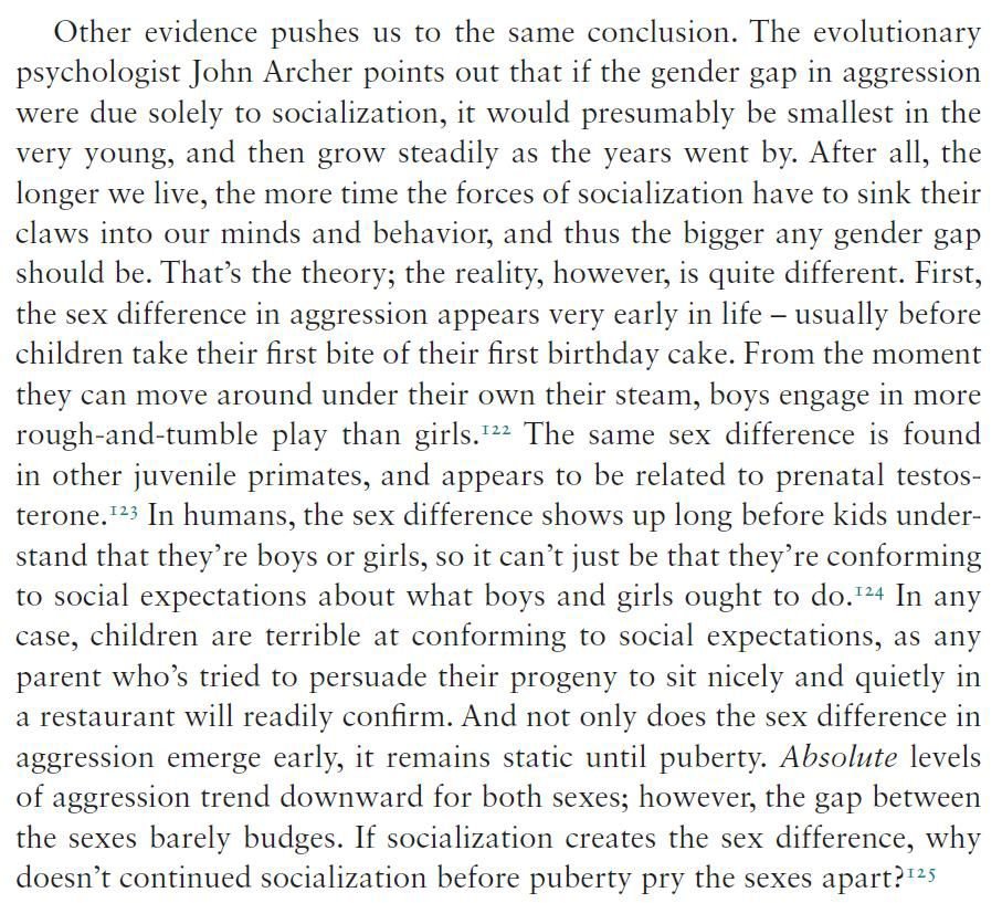 Men aren’t socialized to be aggressive. The entire upbringing of boys is about taming their innate aggression.