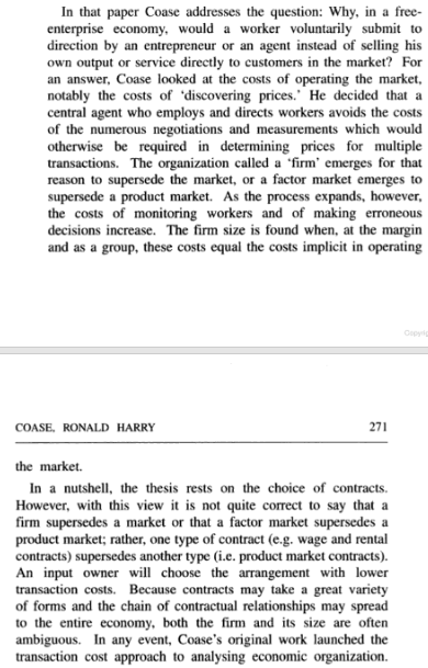 in comparative institutional analysis, law and economics, property rights, Ronald Coase, theory of the firm