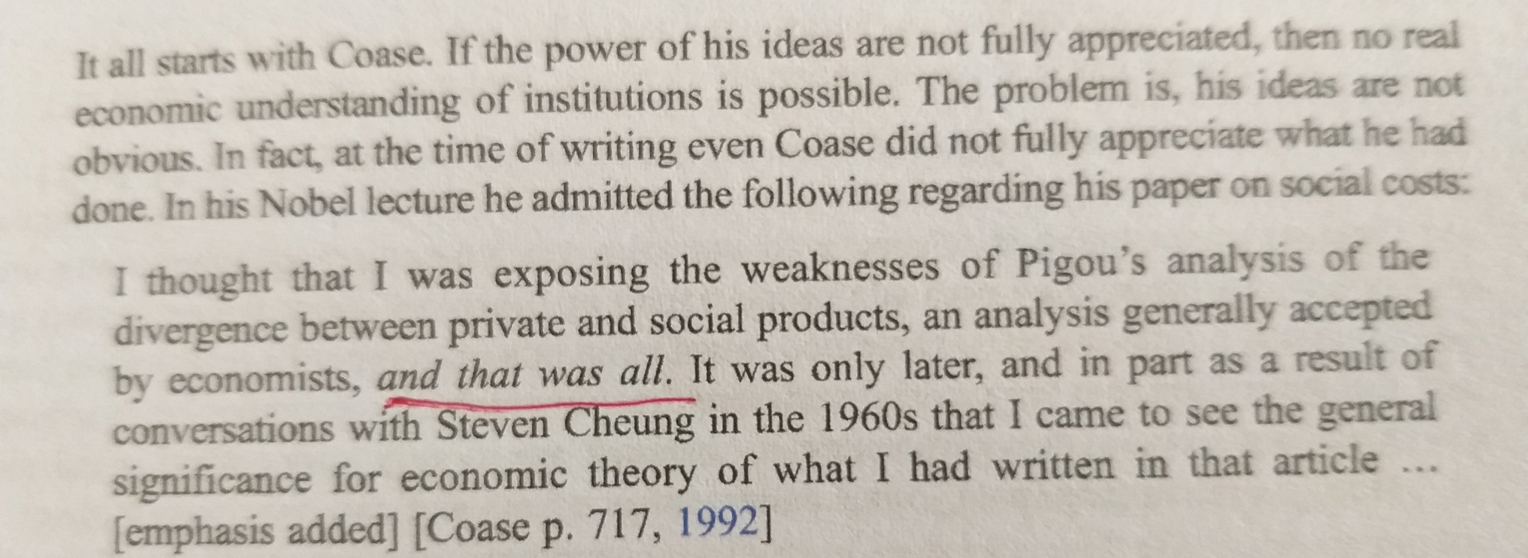 in applied price theory, applied welfare economics, comparative institutional analysis, economics of regulation, environmental economics, history of economic thought, industrial organisation, law and economics, property rights, Ronald Coase Tags: Coase theorem