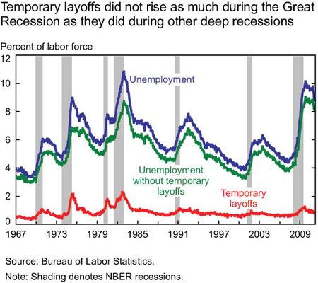 Larger firms lay off workers; smaller firms tended to reduce wages. This British data showing widespread wage cuts dates back to the 1980s. Recent Irish data also shows extensive wage cuts among job stayers.