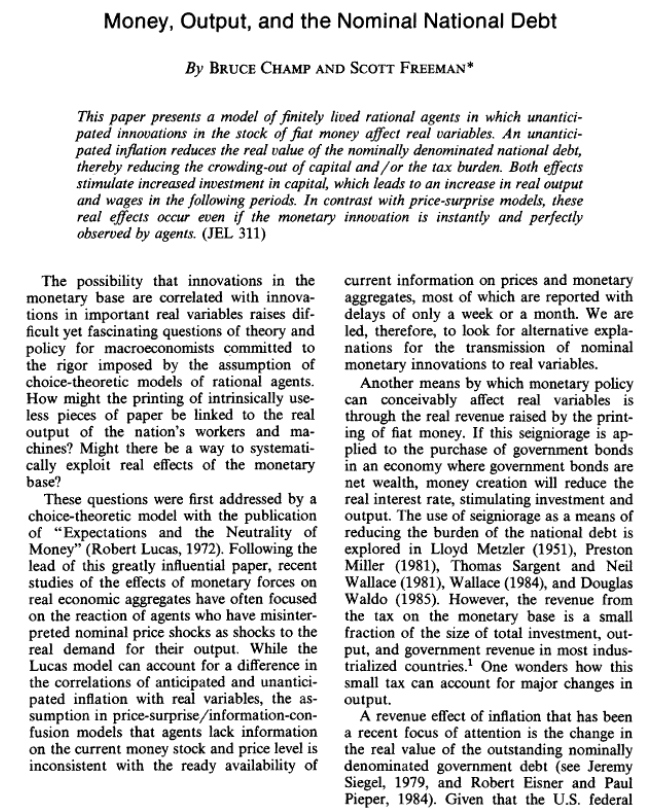 From Inside Money, Output, and Causality, Scott Freeman and Gregory W. Huffman, International Economic Review, Vol. 32, No. 3 (August 1991), pp. 645-667 Stable URL: http://www.jstor.org/stable/2527112