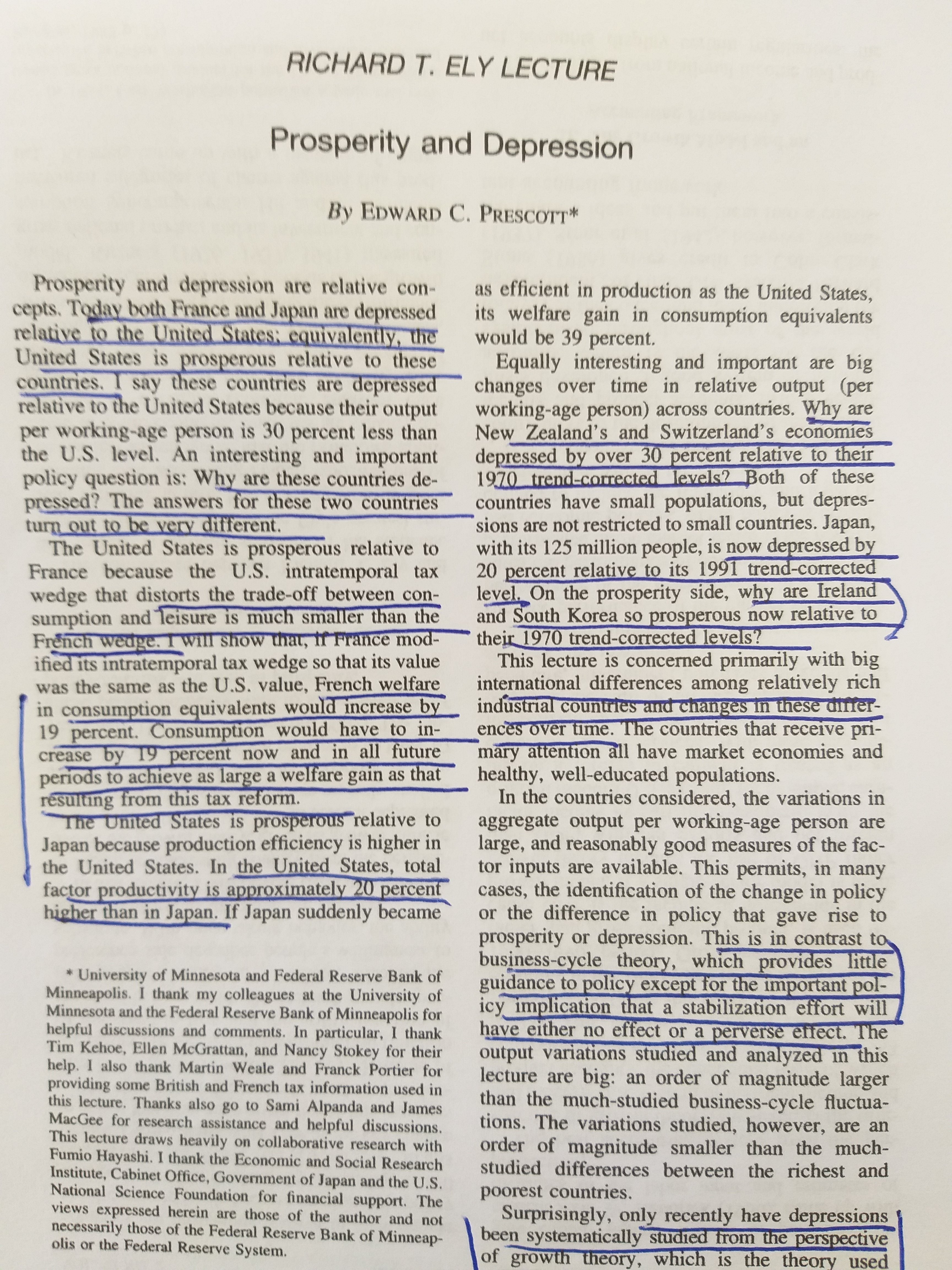 Prescott on real business cycle theory ignoring depressions