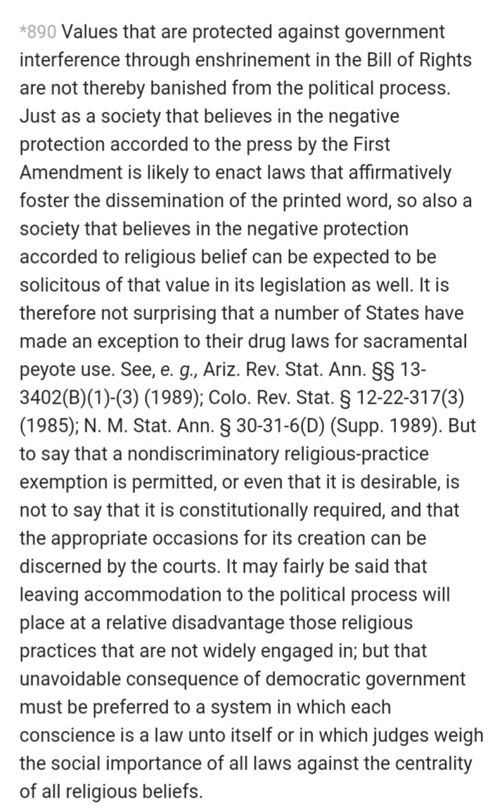 Justice Scalia on securing religious accommodations through normal democratic means