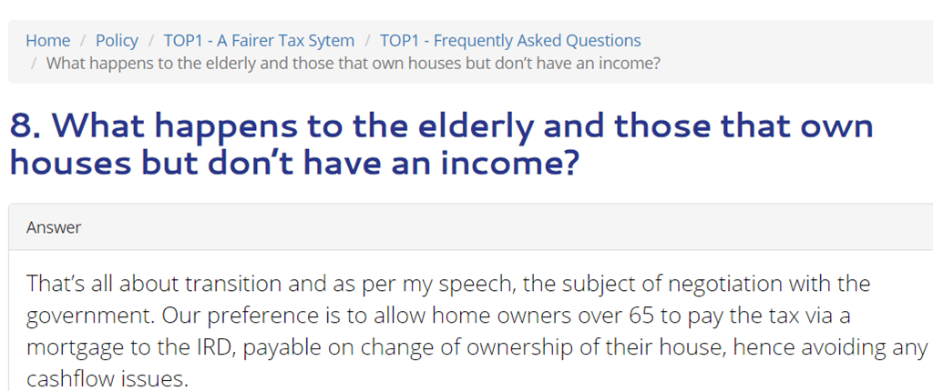 Over 70% of the retired own their own house mortgage free. The majority of that equity will now go to IRD plus interest by the time both members of the couple die given the average capital tax will be about $10,000 per year in Wellington and twice that in Auckland. They face up to 20 to 25 years of deferred capital taxation that will take half the value of their house easily. It will be hardest if they must cash-out their house to go into retirement home.