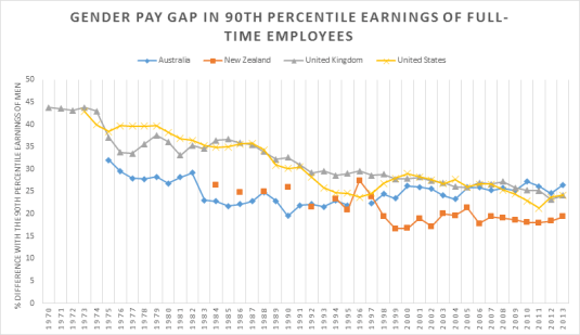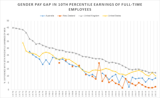 If victory is a zero gender wage gap, some countries have achieved it already for single female workers and long ago according to the data charted below is from the Luxembourg Income Study.