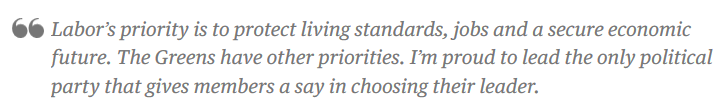The Greens then give their opponents a free kick regarding their views on coal:and their commitment to science-based risk policy: