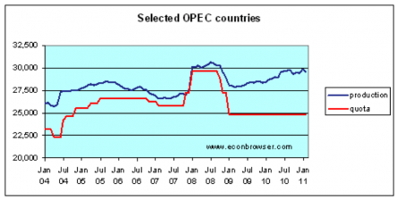 OPEC members pay scant regard to their actual production quotas and their national production quotas are always increased when push comes to shove. As Bill Allen said: