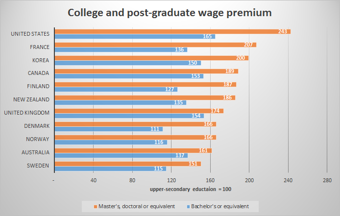 in economics of education, human capital, labour economics, occupational choice Tags: Australia, British economy, Canada, College premium, Denmark, education premium, Finland, France, graduate premium, Ireland, Korea, Norway, post-graduate premium, Sweden