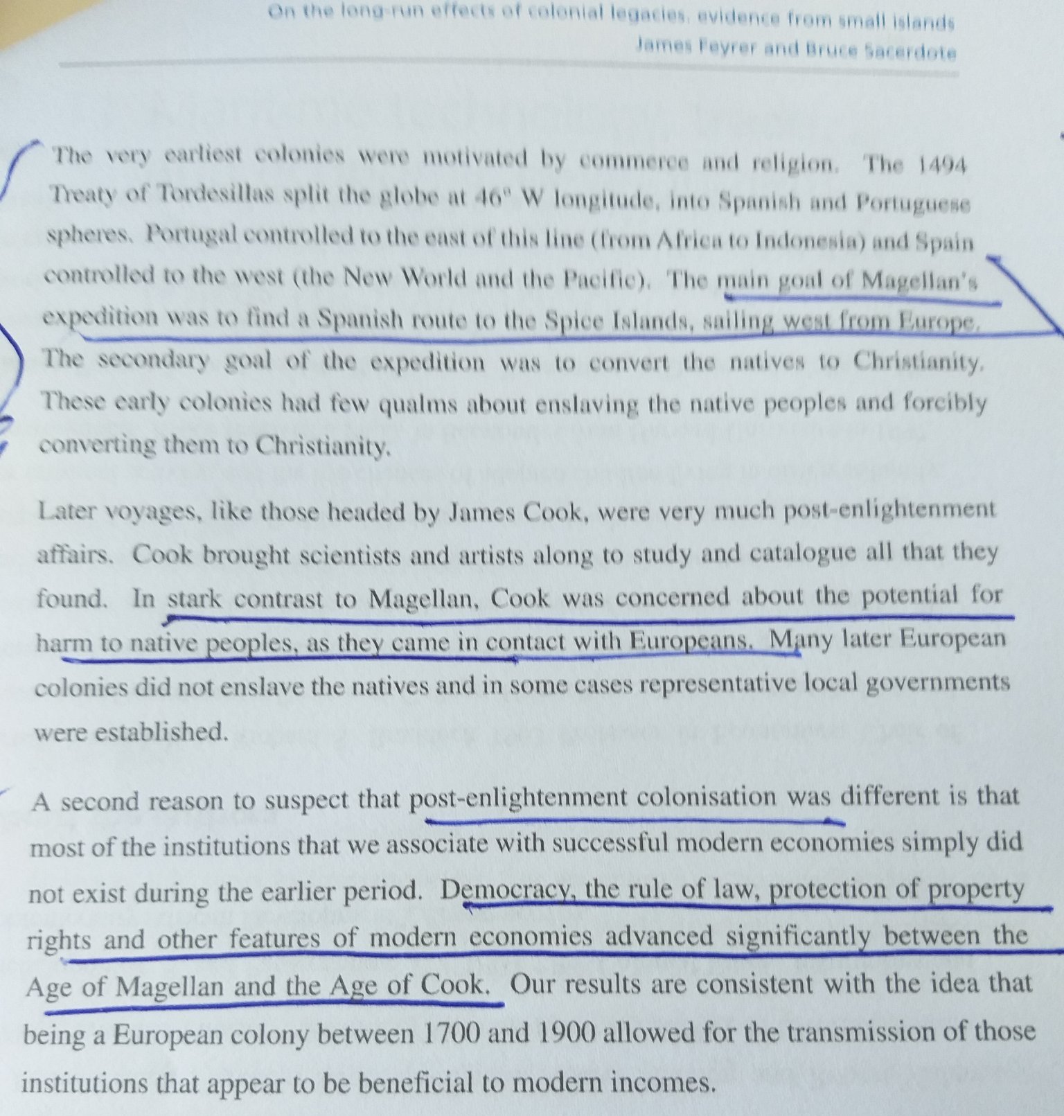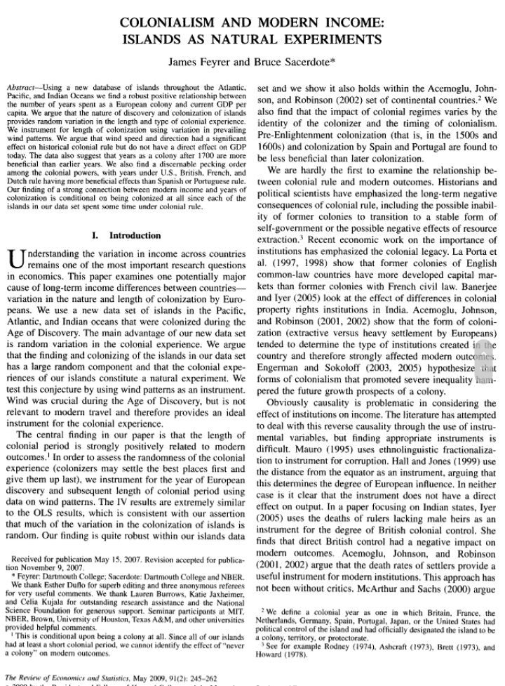 Colonialism and Modern Income: Islands as Natural Experiments by James Feyrer and Bruce Sacerdote