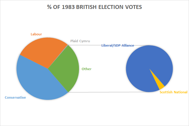 The combination of these splitters from the British Labour Party and the Liberal party won 25% of the vote, two percentage points behind the British Labour Party.