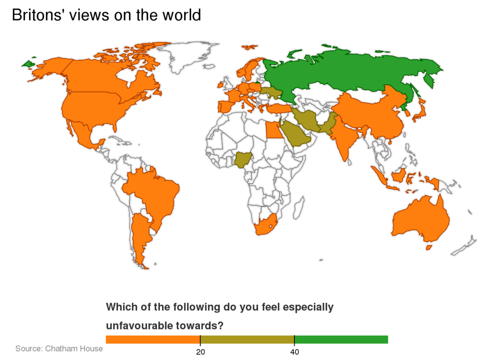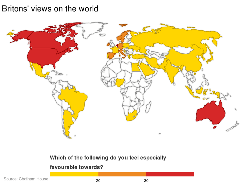 The countries that Britons like and dislike most