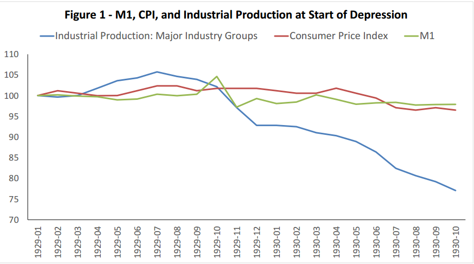 This decline in industrial production occurs before any banking crises. Despite this sector specific nature of the onset that Great Depression, monetary policy might have some role in explaining the start of the Great Depression but not in its prolongation: