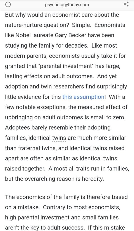 in discrimination, economics of education, economics of love and marriage, gender, health economics, human capital, labour economics, labour supply, law and economics, occupational choice, poverty and inequality Tags: behavioral genetics, child psychology, evolutionary psychology, personality psychology