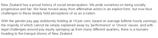 I suggest to you that you should think more deeply about the quality of advice you have just received from the causes of the gender wage gap in New Zealand.