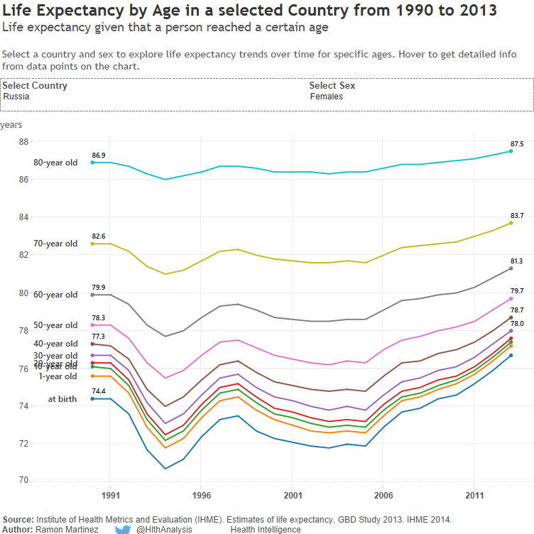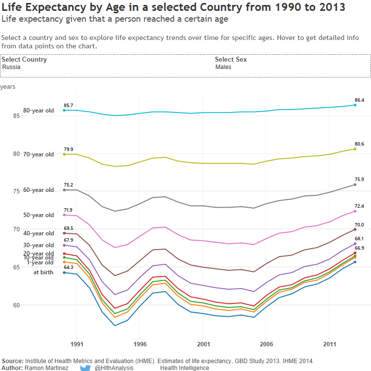 The return of The Great Escape to Russia: life expectancies by age and sex, 1990 to 2013