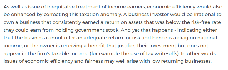 The possibility that the entire company tax may show up as lower wages when capital is internationally mobile is just not even contemplated. This is despite foreign direct investment being welcomed on the grounds that more capital means higher wages for local workers.