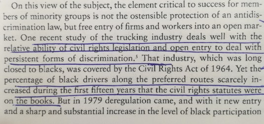 in applied price theory, discrimination, economic history, economics of regulation, gender, labour economics, law and economics, Public Choice, rentseeking, Richard Epstein, transport economics Tags: competition law, creative destruction, racial discrimination
