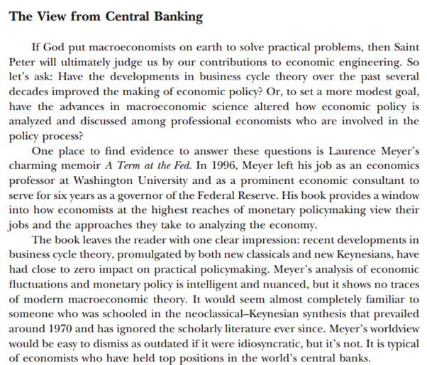 Greg Mankiw on the zero influence of modern macroeconomics on monetary policy making