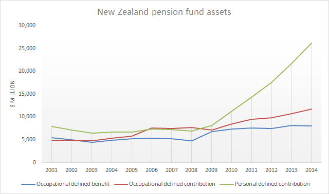 New Zealand pension fund assets since 2001
