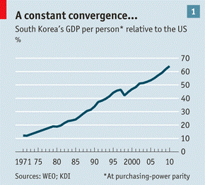 Korean economic growth turned out to be 7.3 per cent in the forecasted period. In 1960, South Korea was one of the poorest countries in the world, with an income per head on a par with the poorest parts of Africa.