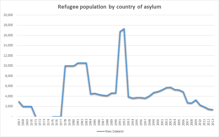 Australia and New Zealand at times has taken in a great many refugees from abroad according to the United Nation’s High Commissioner for Refugees data. Oddly enough these bursts of generosity coincided with a Liberal Country party government in Australia and National Party governments in New Zealand. The Left of New Zealand politics was too busy fighting to be nuclear free to make New Zealand a place of refuge for the victims of oppression when they had their hands on the wheels of power.