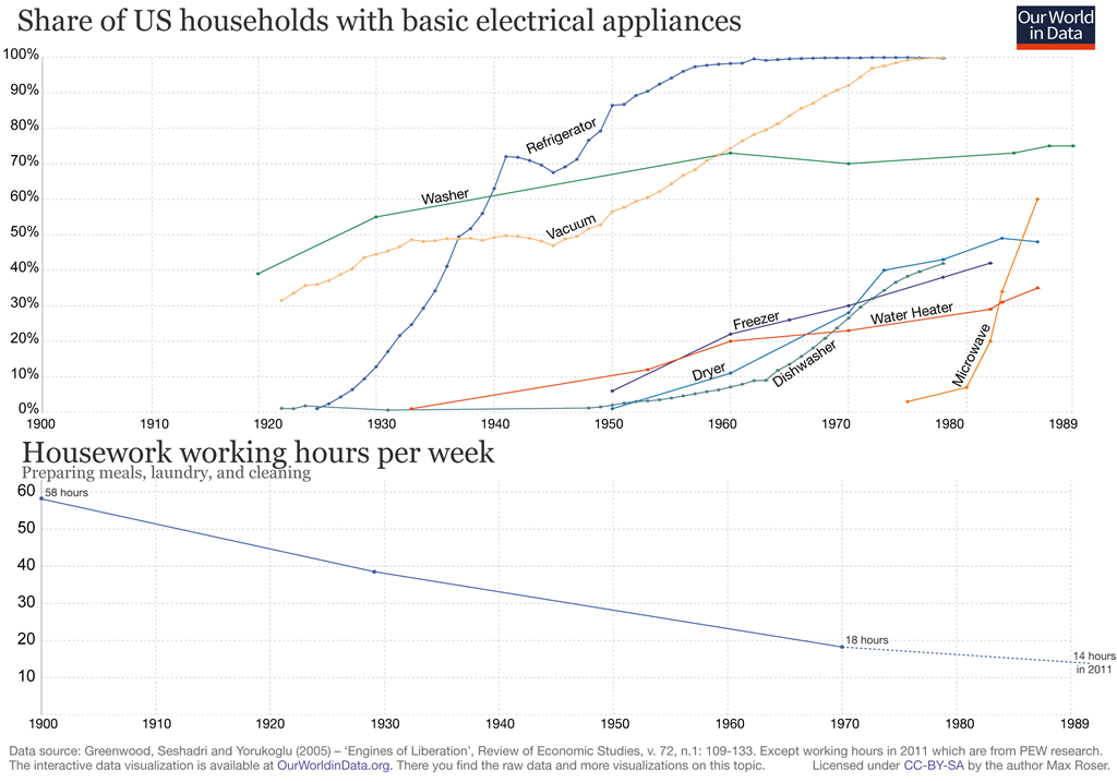 in economic history, labour economics, labour supply Tags: creative destruction, engines of liberation, household production, housework, technology diffusion, The Great Enrichment