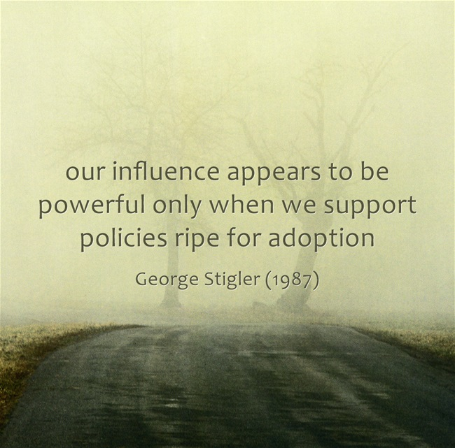 in George Stigler, history of economic thought, Public Choice, rentseeking Tags: evidence-based policy, expressive politics, expressive voting, intellectuals, politics of reform, rational ignorance, rational irrationality