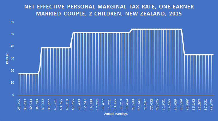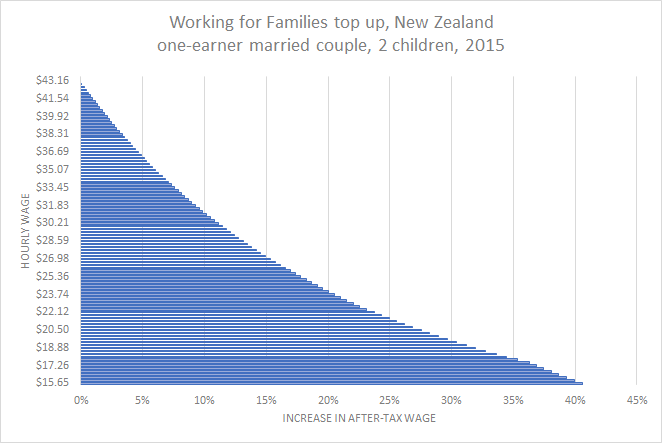 In work tax credits for families in Working For Families certainly makes a difference to the after-tax, after government transfers living standards of the family on an average wage.