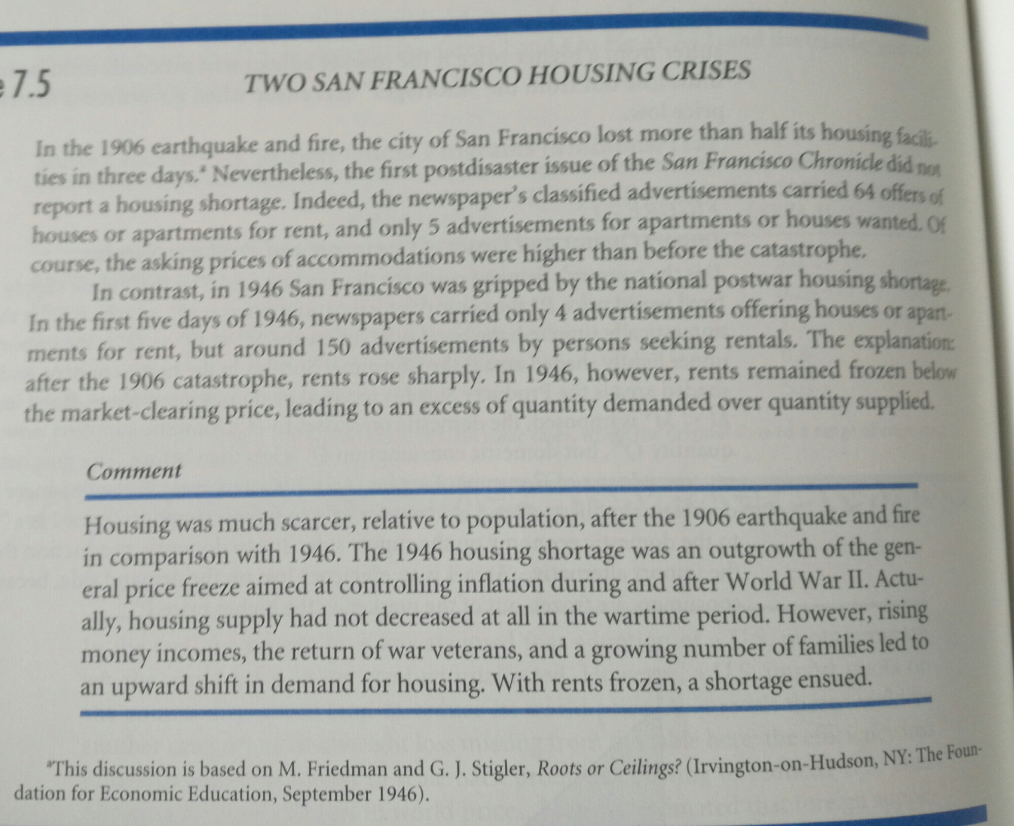 in applied price theory, economic history, economics of natural disasters, economics of regulation, Milton Friedman Tags: george stigler, rent control