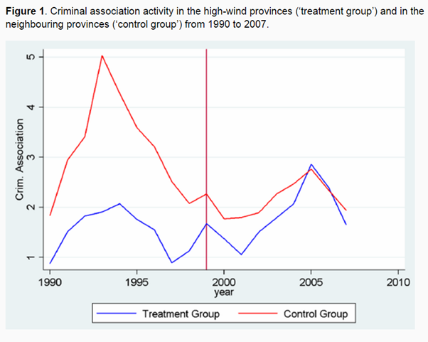 The construction of an average wind park is associated with an increase of criminal association activity of 6%. Italy will have more corruption than elsewhere in the old European Union.