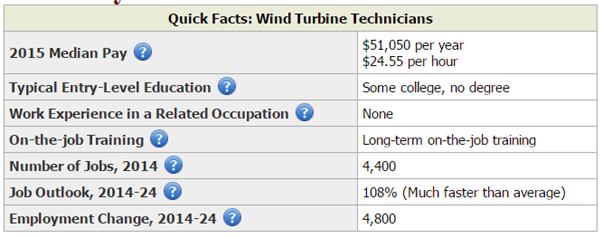 Source: Wind Turbine Technicians : Occupational Outlook Handbook: : U.S. Bureau of Labor Statistics.