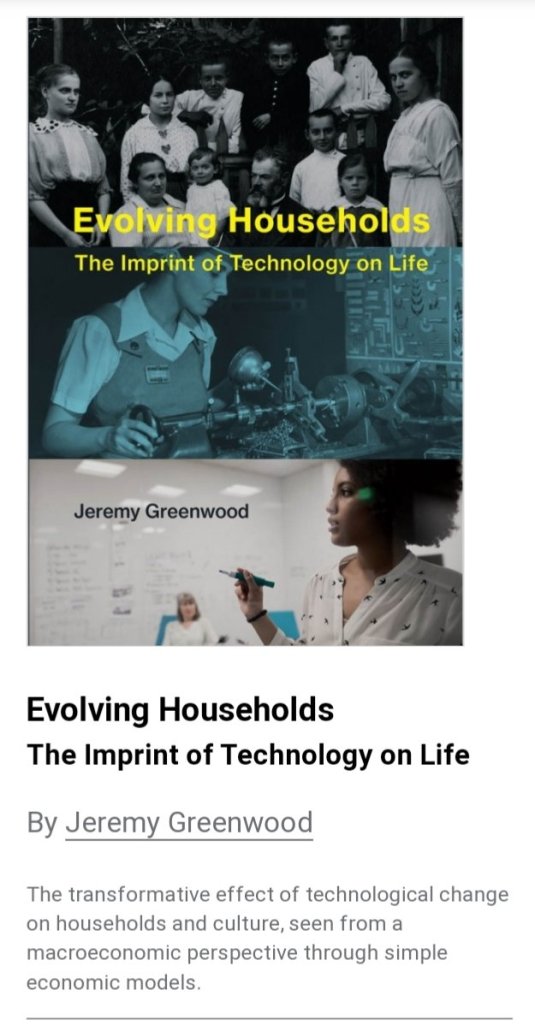 in applied price theory, discrimination, economic growth, economic history, economics of education, economics of information, economics of love and marriage, economics of media and culture, gender, health and safety, human capital, industrial organisation, labour economics, labour supply, law and economics, macroeconomics, minimum wage, occupational choice, poverty and inequality Tags: household production, real business cycles, The Great Enrichment